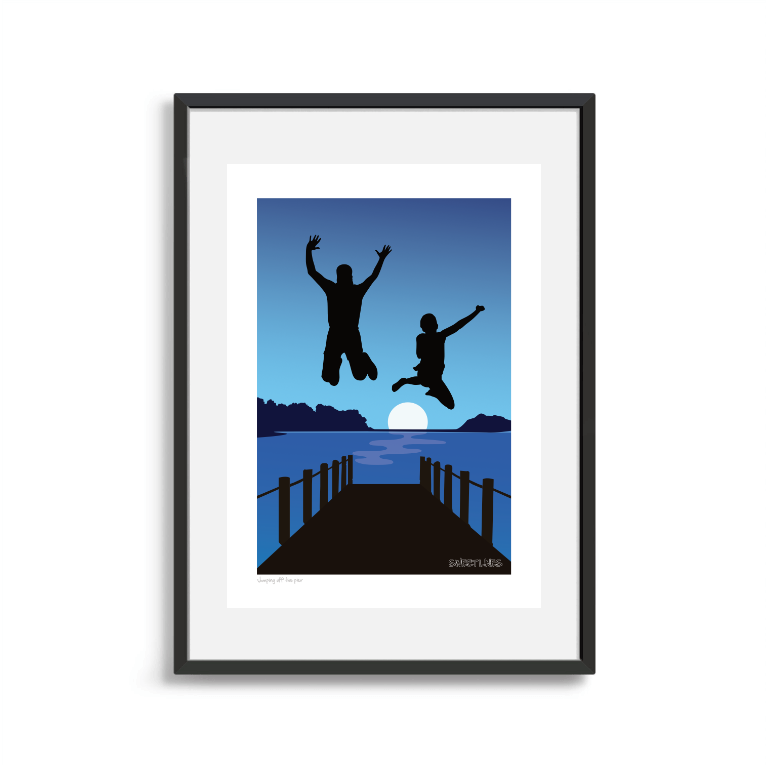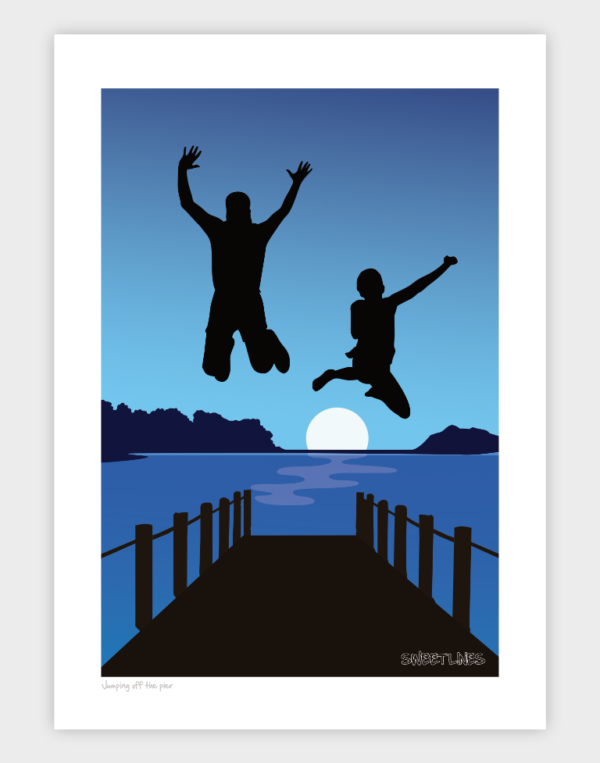 Two jumping off the pier Art Print